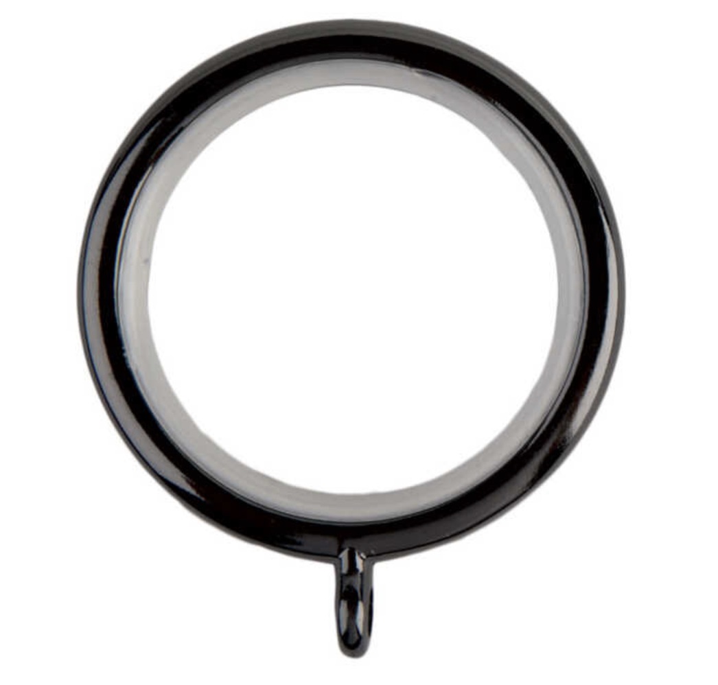 12 rings for use on a 28mm pole. In black nickel effect with nylon lining.