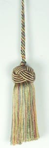 A key tassel 9cm long excluding hanging loop, from a collection of classic design, using a yarn in rich golds, creams and royal primary colours. With a choice of ornate tiebacks, the collection brings a regal feel to any interior.