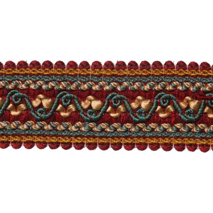 30mm wide braid, from a collection of classic designs, using a yarn in rich golds, creams and royal primary colours. With a choice of ornate tiebacks, the collection brings a regal feel to any interior.