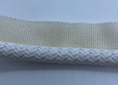 This Fun Flanged Cord is on a straight band. 22mm wide, including 14mm braid at the top and 8mm diameter cord.