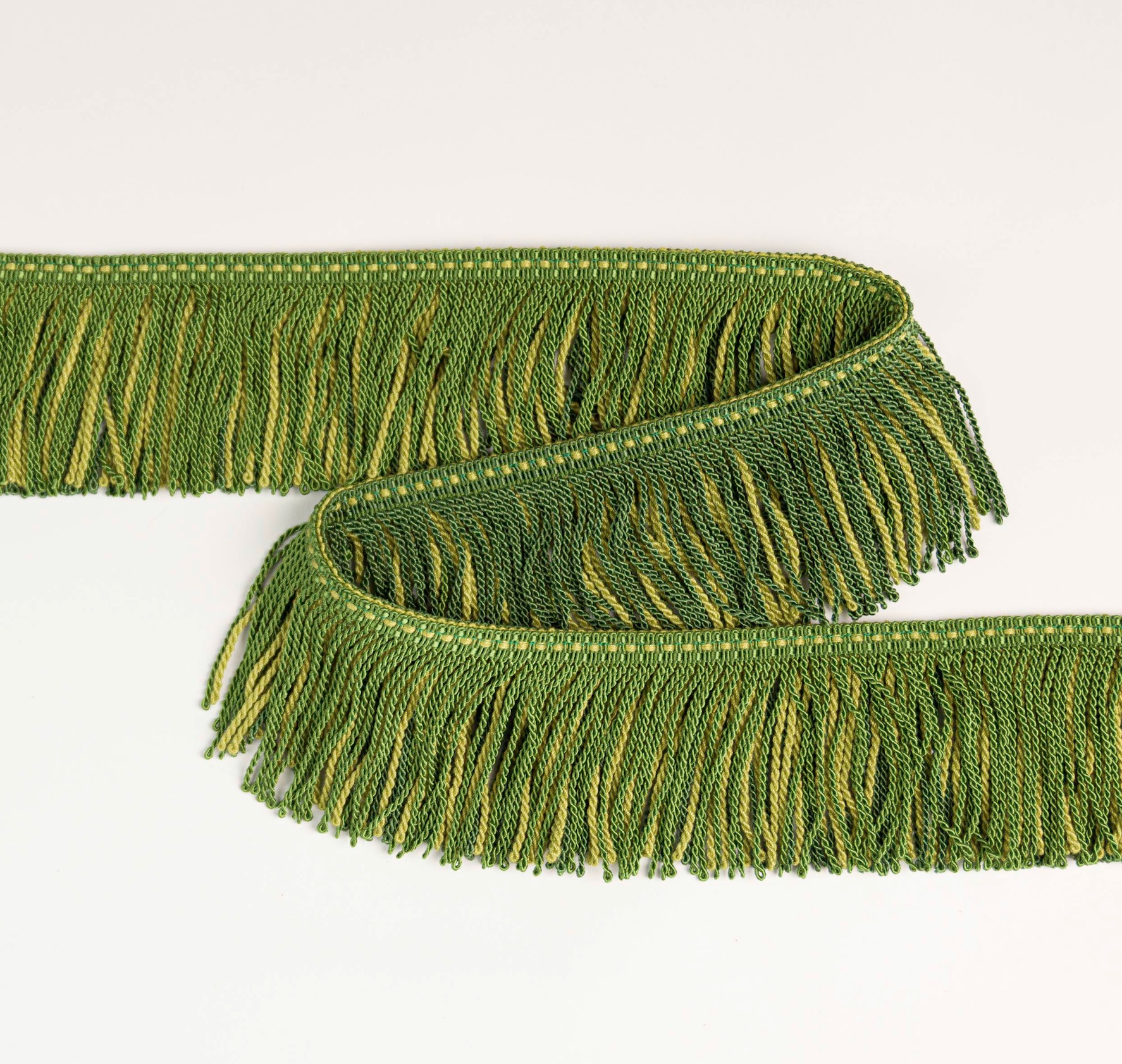 A fine bullion fringe featuring three layers of satin twisted rope. This trim is designed to be fully reversible and is proposed in various contrasting or tonal colour combinations.