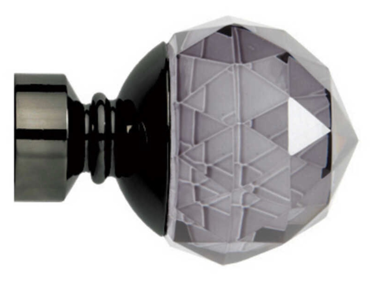 Pair of finials for 28mm diameter pole. Black nickel with smoke grey glass.
