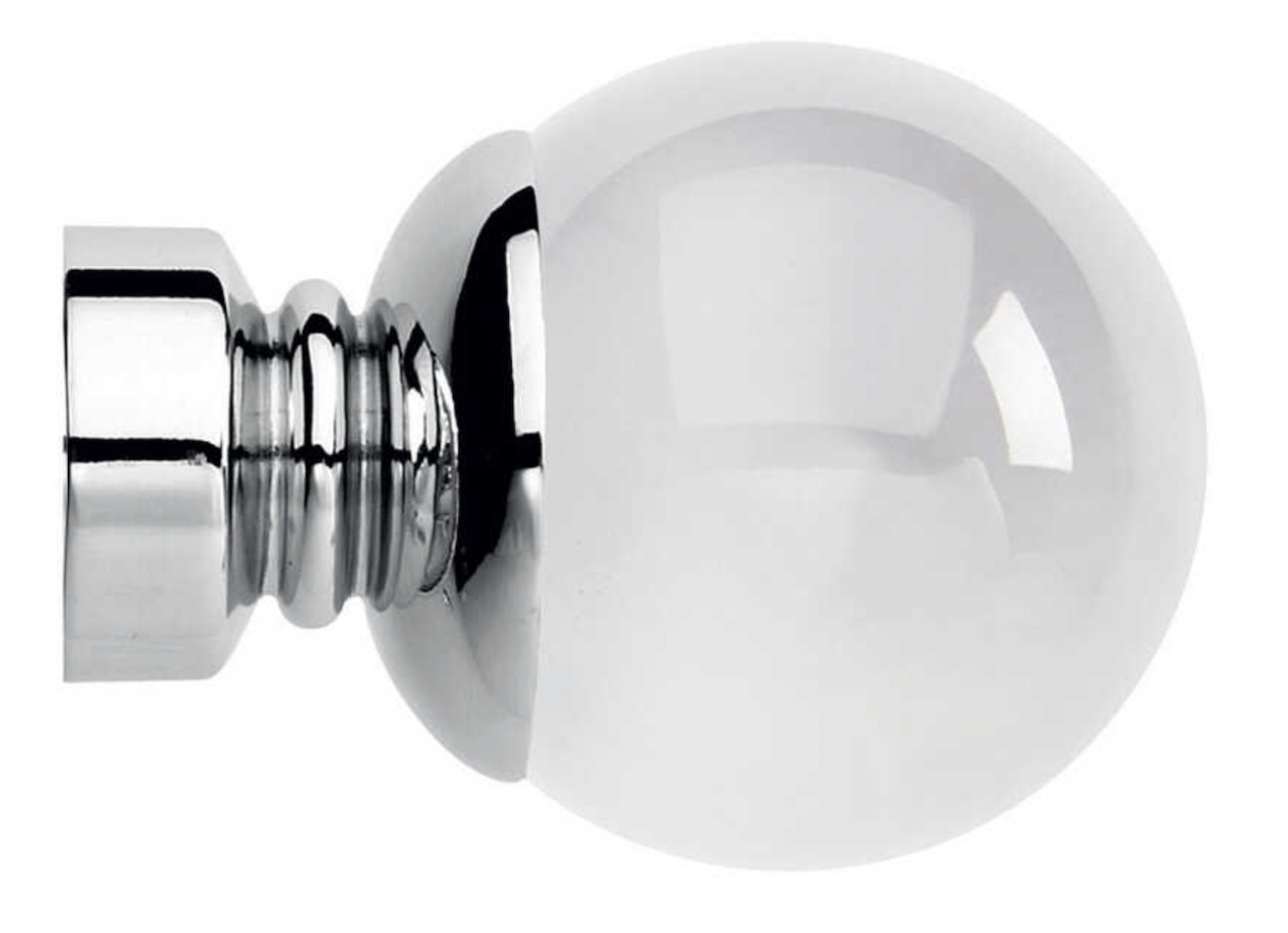 Single finial for 35mm diameter pole. Chrome with clear glass.