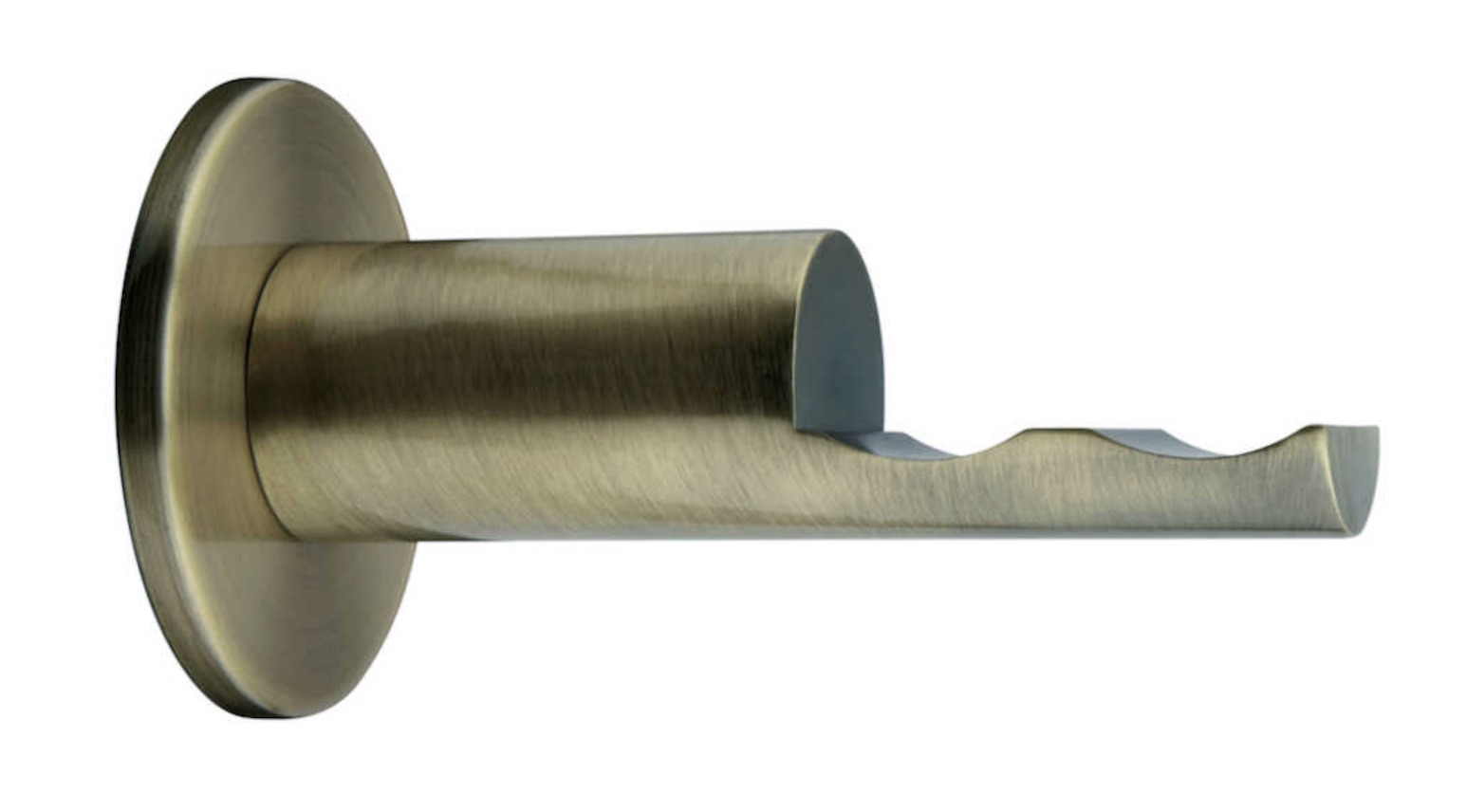 One passing bracket for use on a 35mm pole ideal for bay windows. In spun brass.